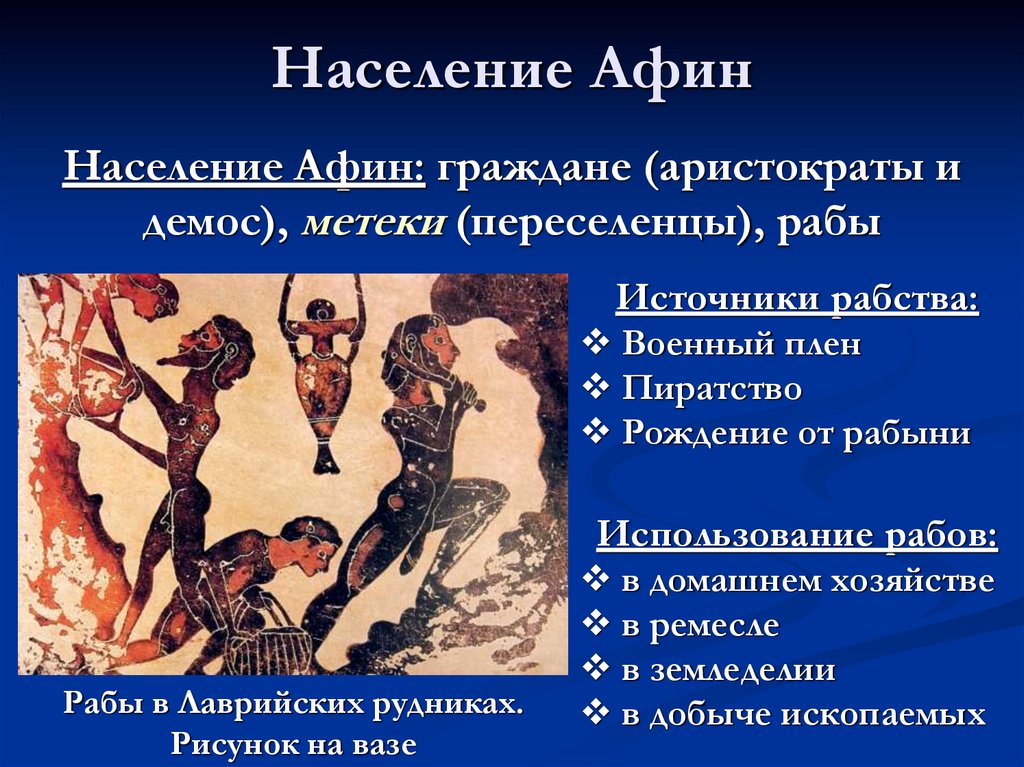 демос), метеки (переселенцы), рабы