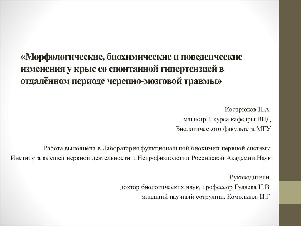 «Морфологические, биохимические и поведенческиеизменения у крыс со спонтанной гипертензией в