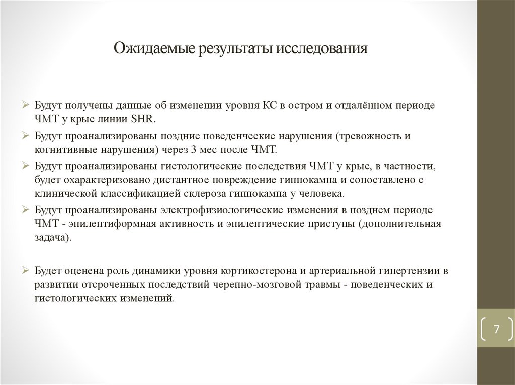• Эффекты ЧМТ у крыс линии SHR на данный момент практически не