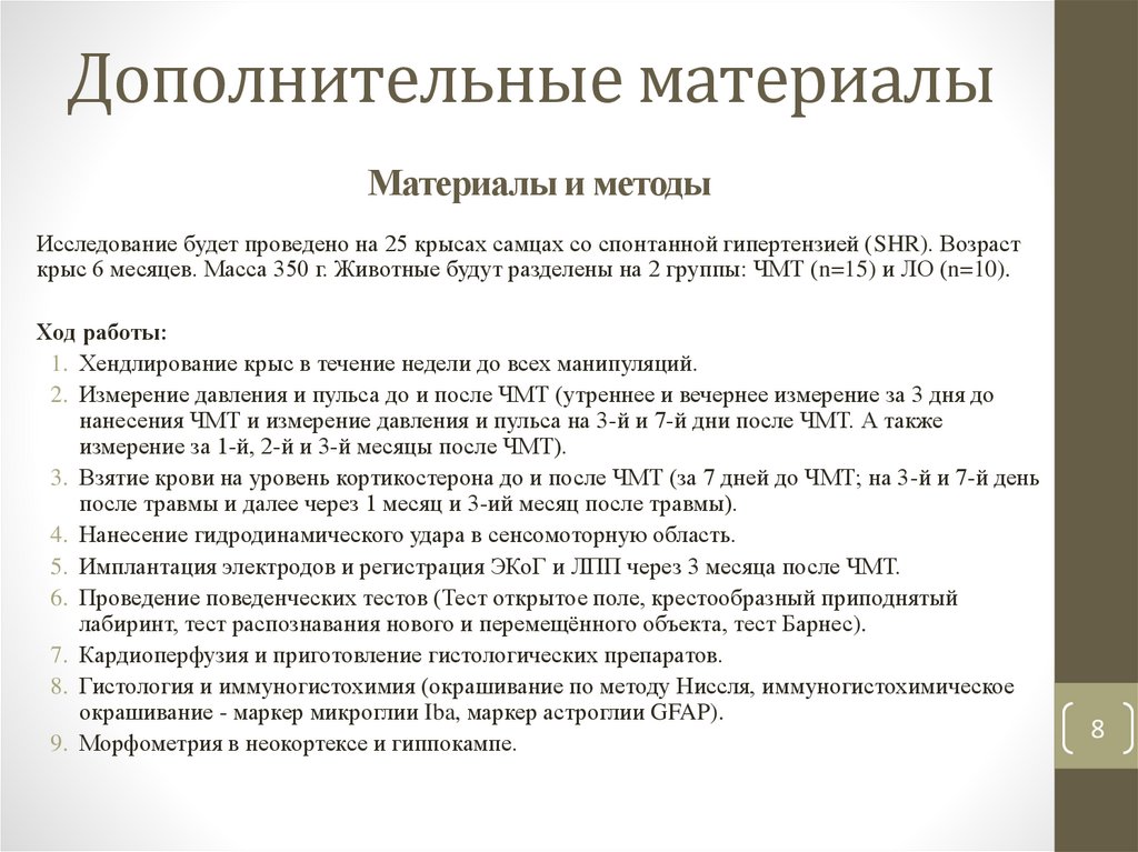 Будут проанализированы гистологические последствия ЧМТ у крыс, в частности,