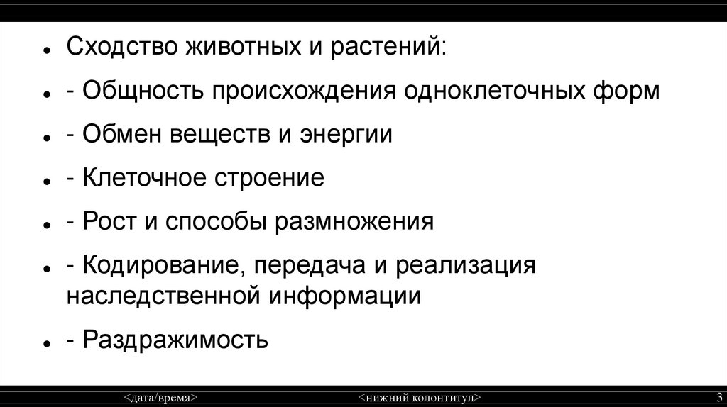 Сходство животных и растений:- Общность происхождения одноклеточных форм