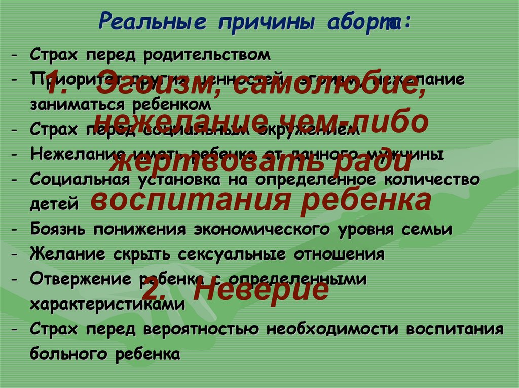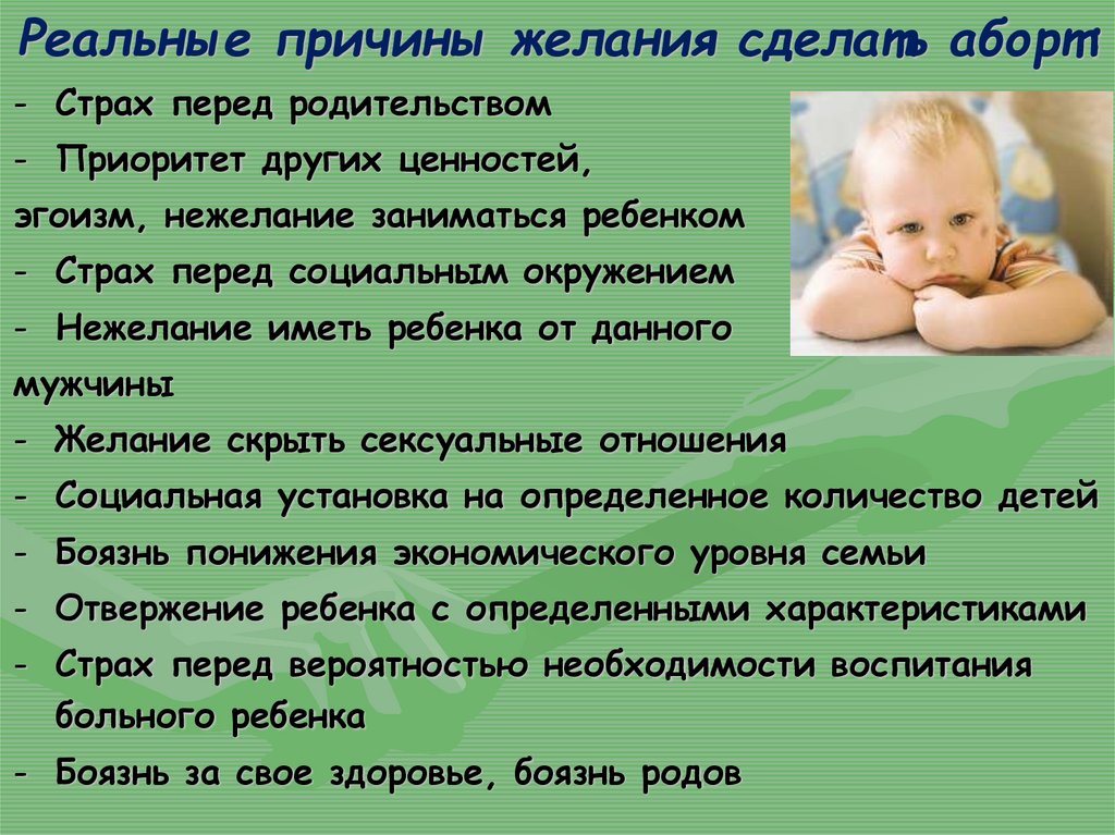 Реальные причины желания сделать аборт:- Страх перед родительством