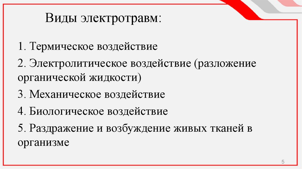 5. Виды электротравм: