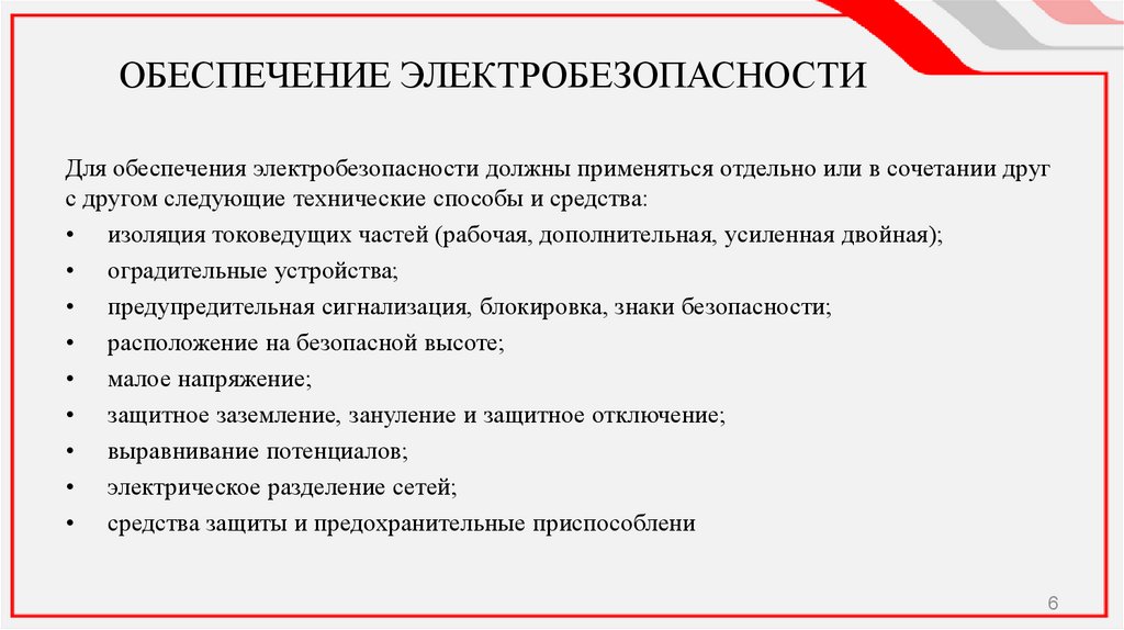 6. ОБЕСПЕЧЕНИЕ ЭЛЕКТРОБЕЗОПАСНОСТИ