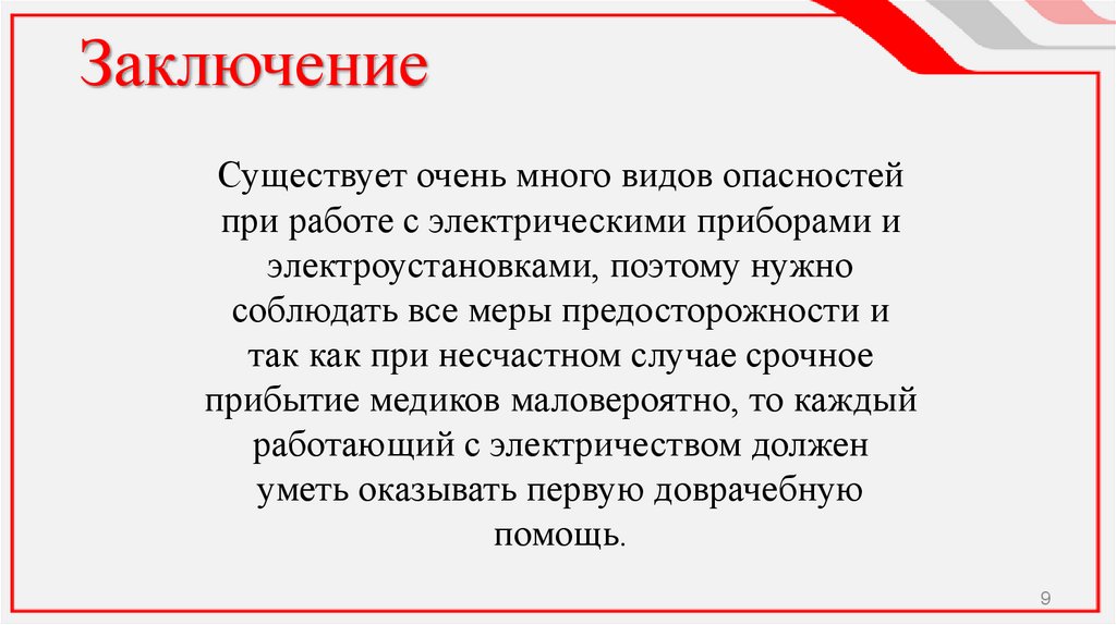Причины поражения электрическим током:• прикосновение к находящимся под напряжением токоведущим частям