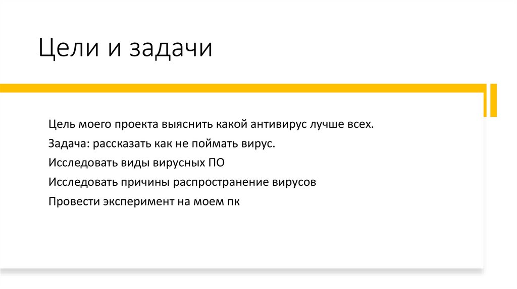 Цели и задачиЦель моего проекта выяснить какой антивирус лучше всех.