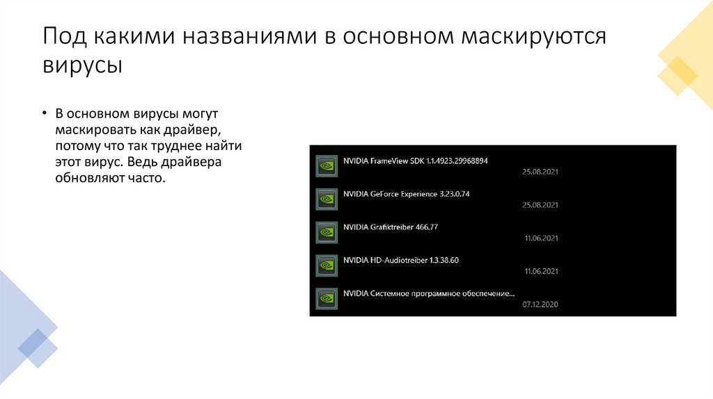 Под какими названиями в основном маскируютсявирусы