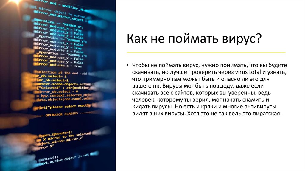 Как не поймать вирус?• Чтобы не поймать вирус, нужно понимать, что вы будите