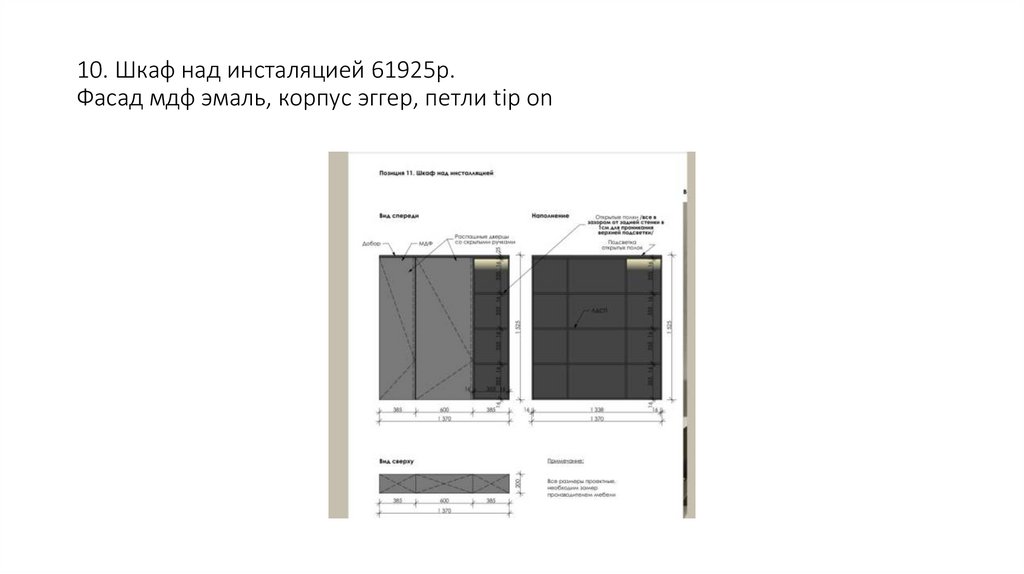 10. Шкаф над инсталяцией 61925р.Фасад мдф эмаль, корпус эггер, петли tip on