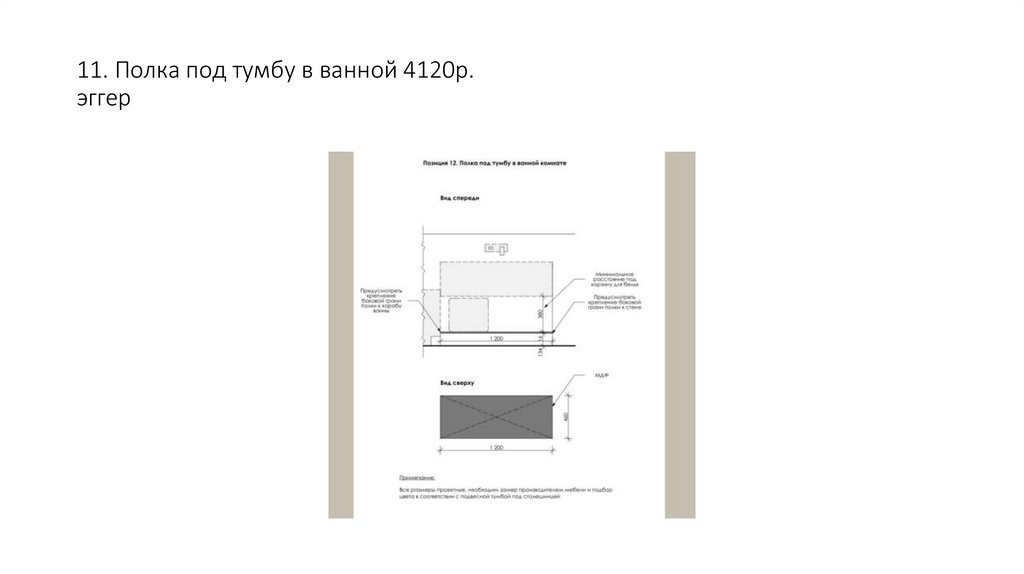 11. Полка под тумбу в ванной 4120р.эггер