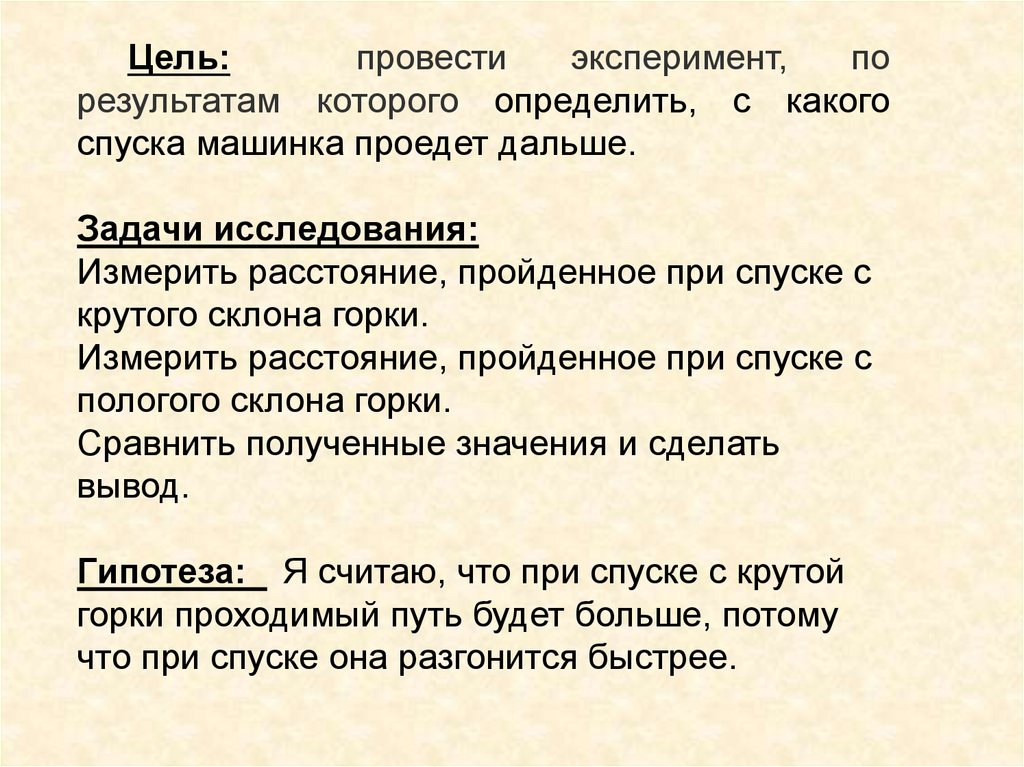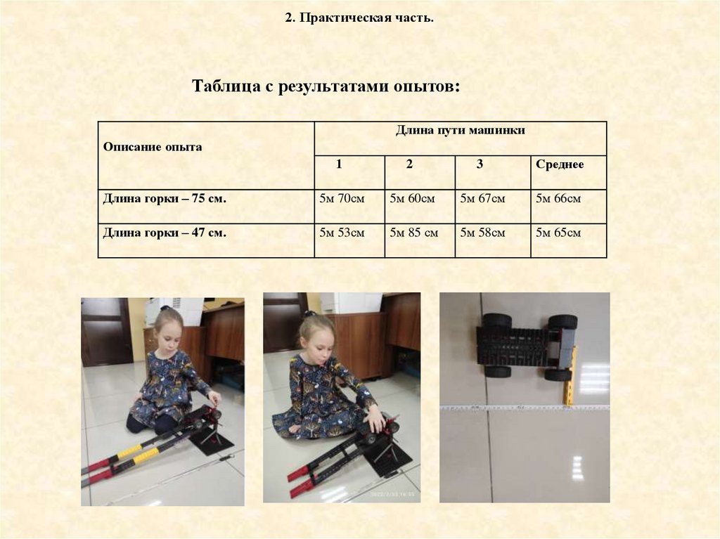 Тема: «Длина пути машинки с крутой ипологой горки»