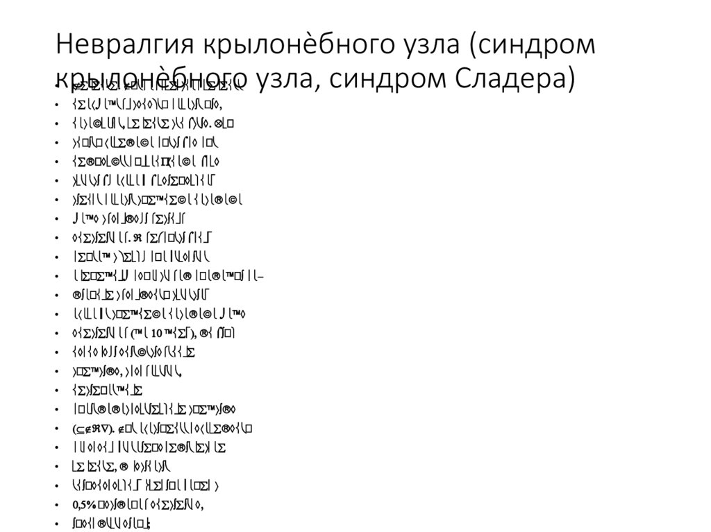 Невралгия крылонѐбного узла (синдромкрылонѐбного узла, синдром Сладера)