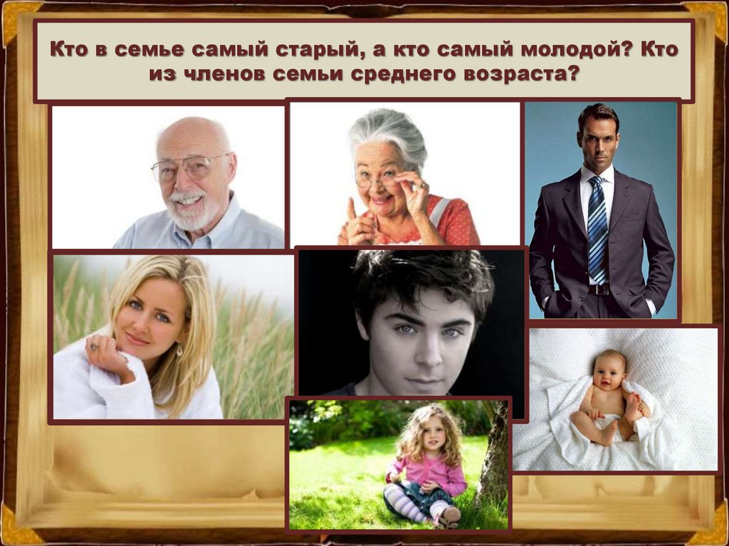 Кто в семье самый старый, а кто самый молодой? Ктоиз членов семьи среднего возраста?