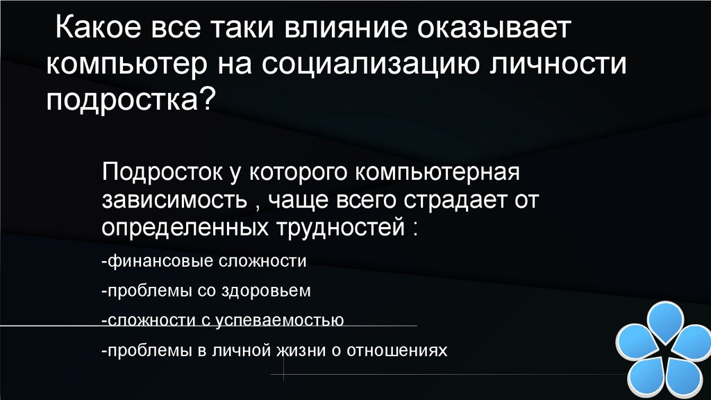 Какое все таки влияние оказываеткомпьютер на социализацию личности