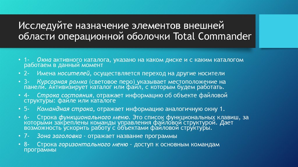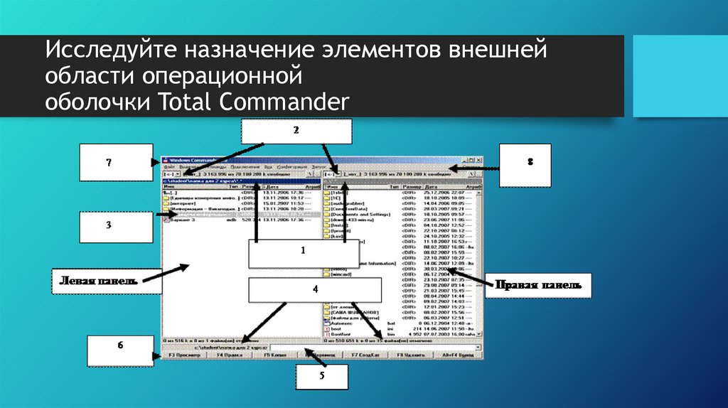 Исследуйте назначение элементов внешнейобласти операционной оболочки Total Commander
