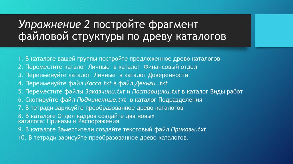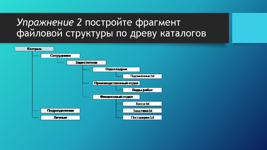 Упражнение 2 постройте фрагментфайловой структуры по древу каталогов