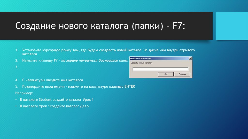 Нажмите клавишу F7 – на экране появиться диалоговое окно: