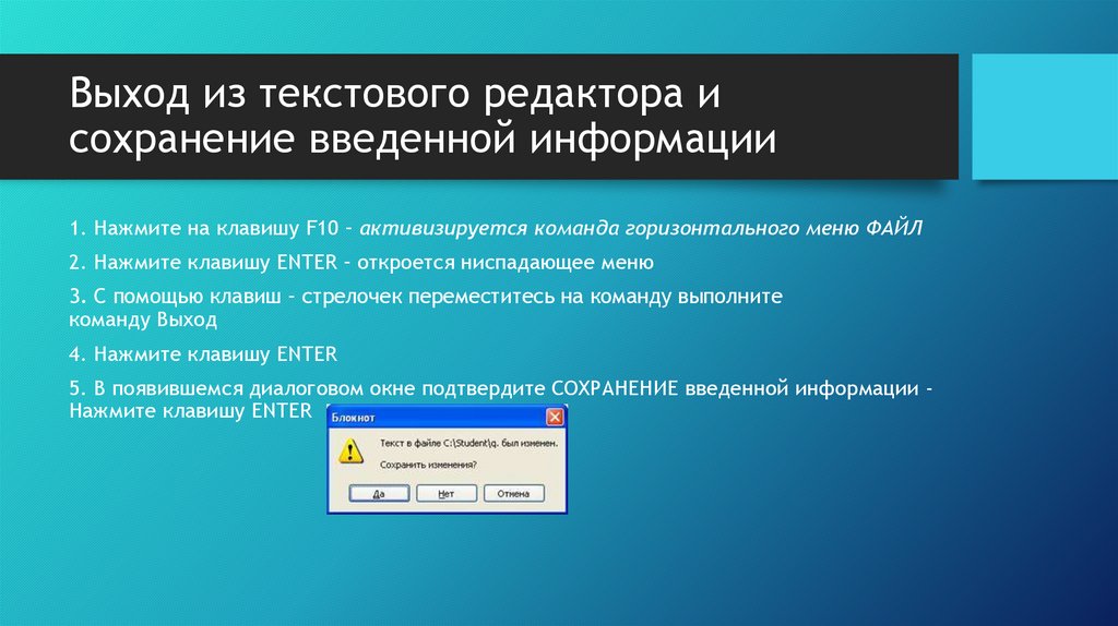 5. В появившемся диалоговом окне подтвердите СОХРАНЕНИЕ введенной информации Нажмите клавишу ENTER