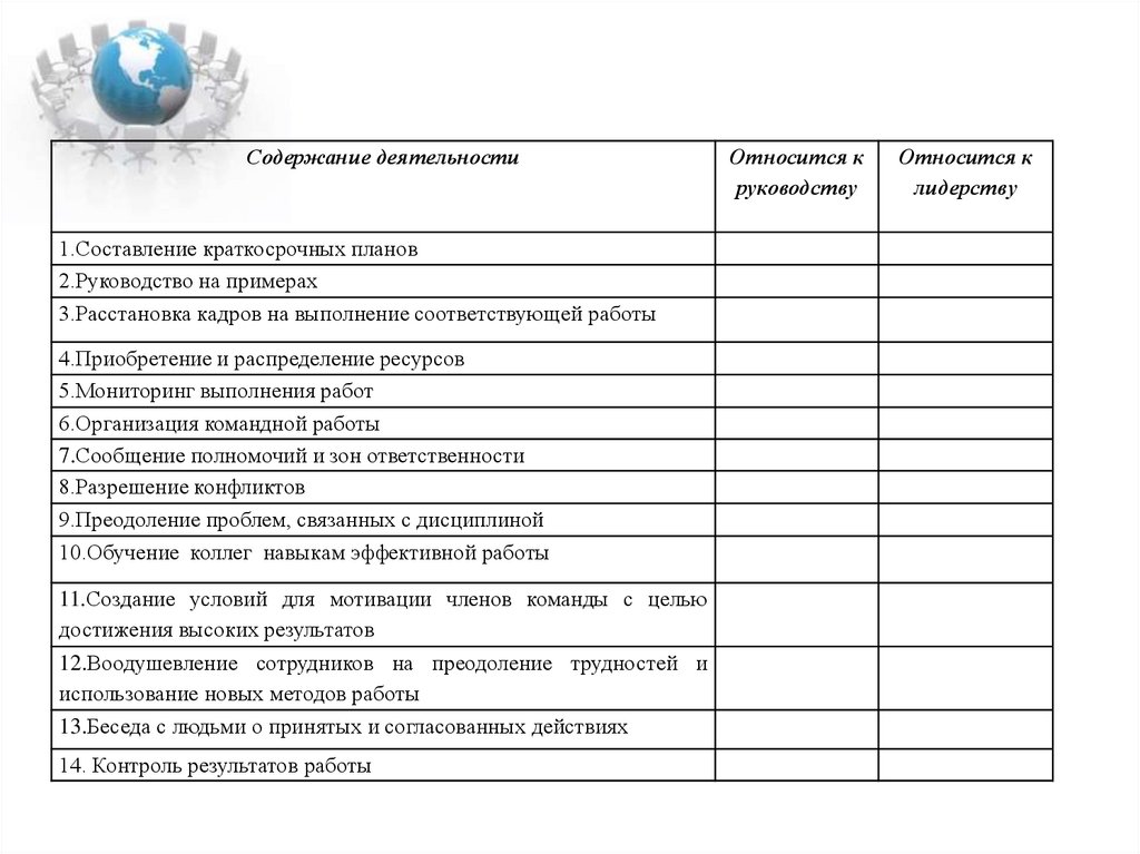 составить классификацию манеры поведения лидера