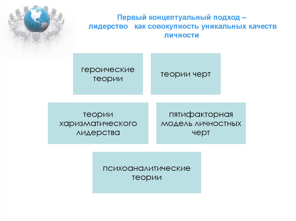 Первый концептуальный подход –лидерство как совокупность уникальных качеств