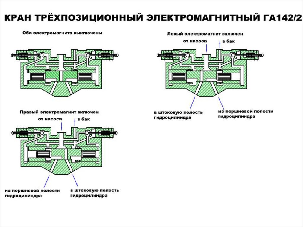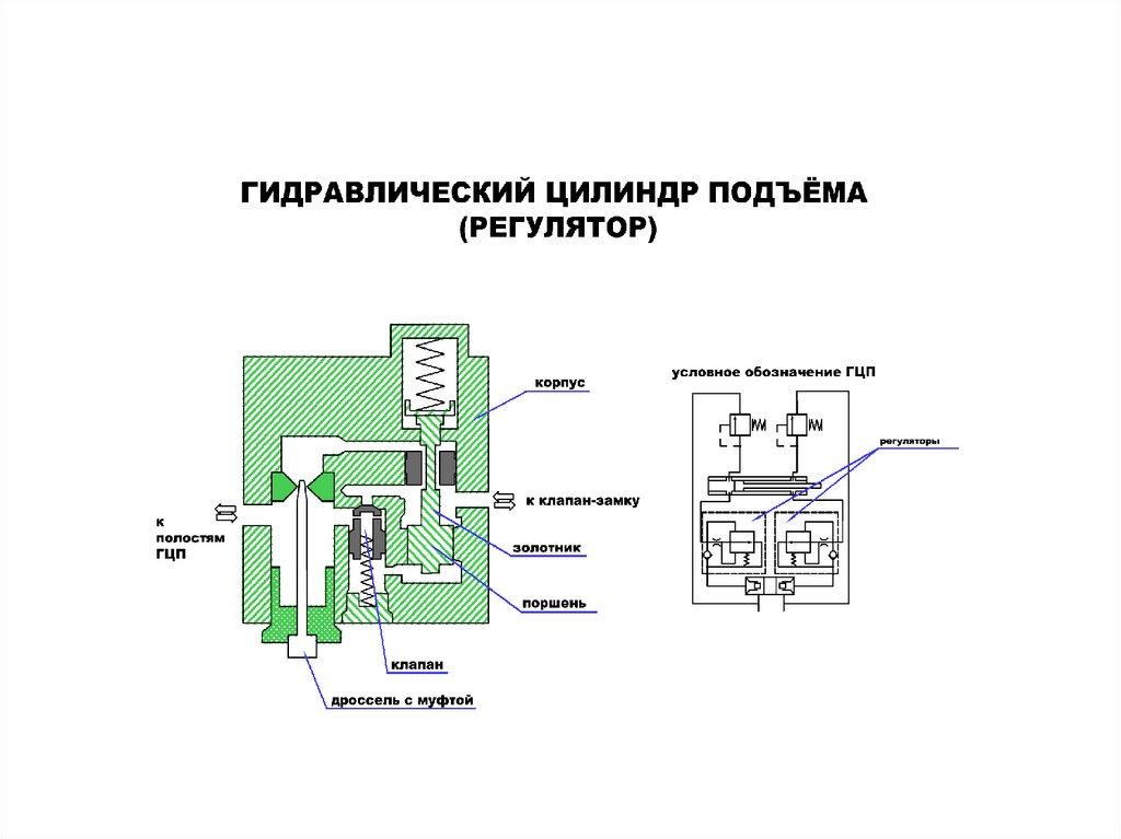 Работа гидросистемы при управлении механизмом подъема иперемещения.