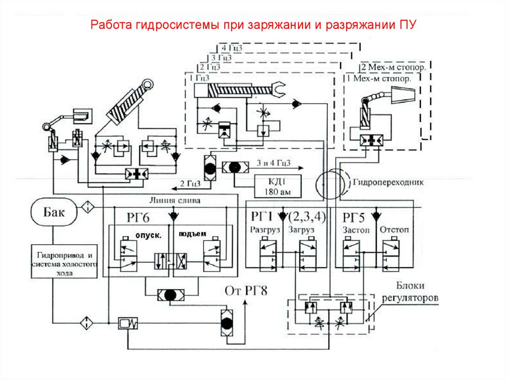 6. Принцип работы гидросистемы ПУ на холостом ходу