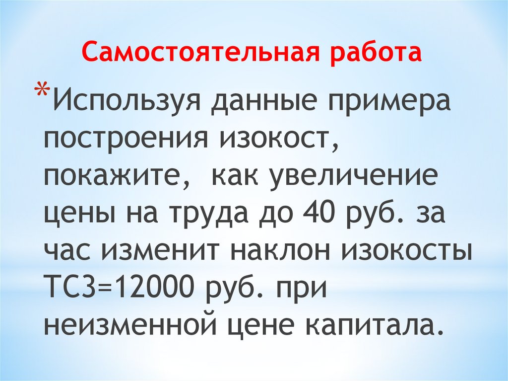 *Пусть цена труда = 20 руб. за час, ацена капитала = 60 руб. за час.