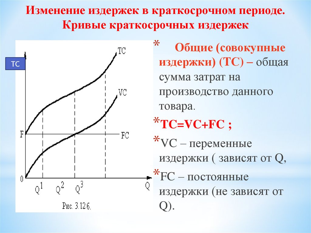 Изменение издержек в краткосрочном периоде.Кривые краткосрочных издержек