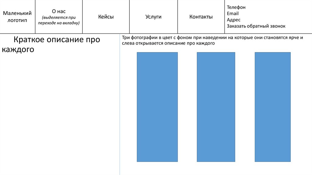 Три фотографии в цвет с фоном при наведении на которые они становятся ярче и