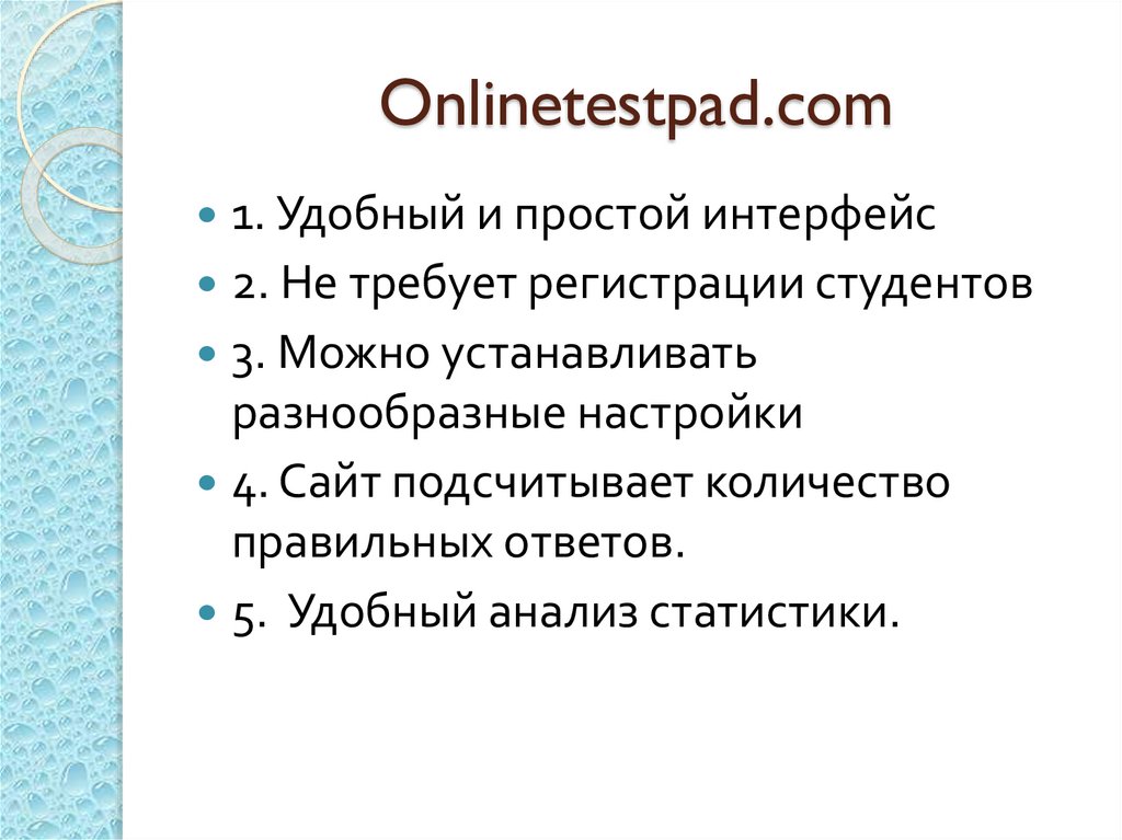 Onlinetestpad.com1. Удобный и простой интерфейс