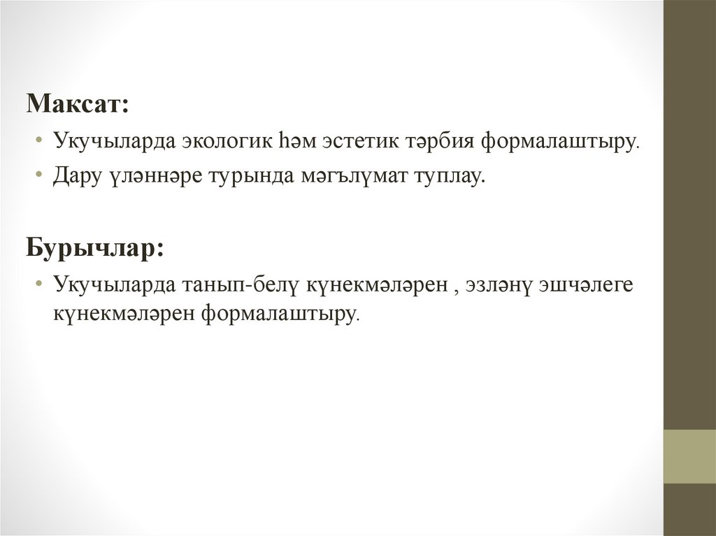 Максат:• Укучыларда экологик һәм эстетик тәрбия формалаштыру.