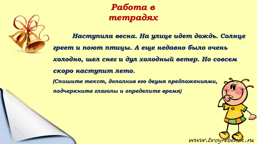 подчеркните глаголы и определите время)