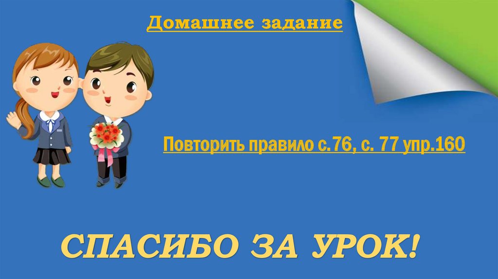 Домашнее заданиеПовторить правило с.76, с. 77 упр.160