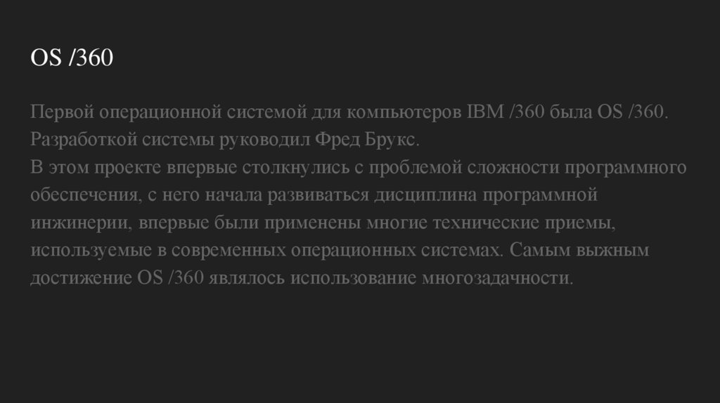 Разработкой системы руководил Фред Брукс.