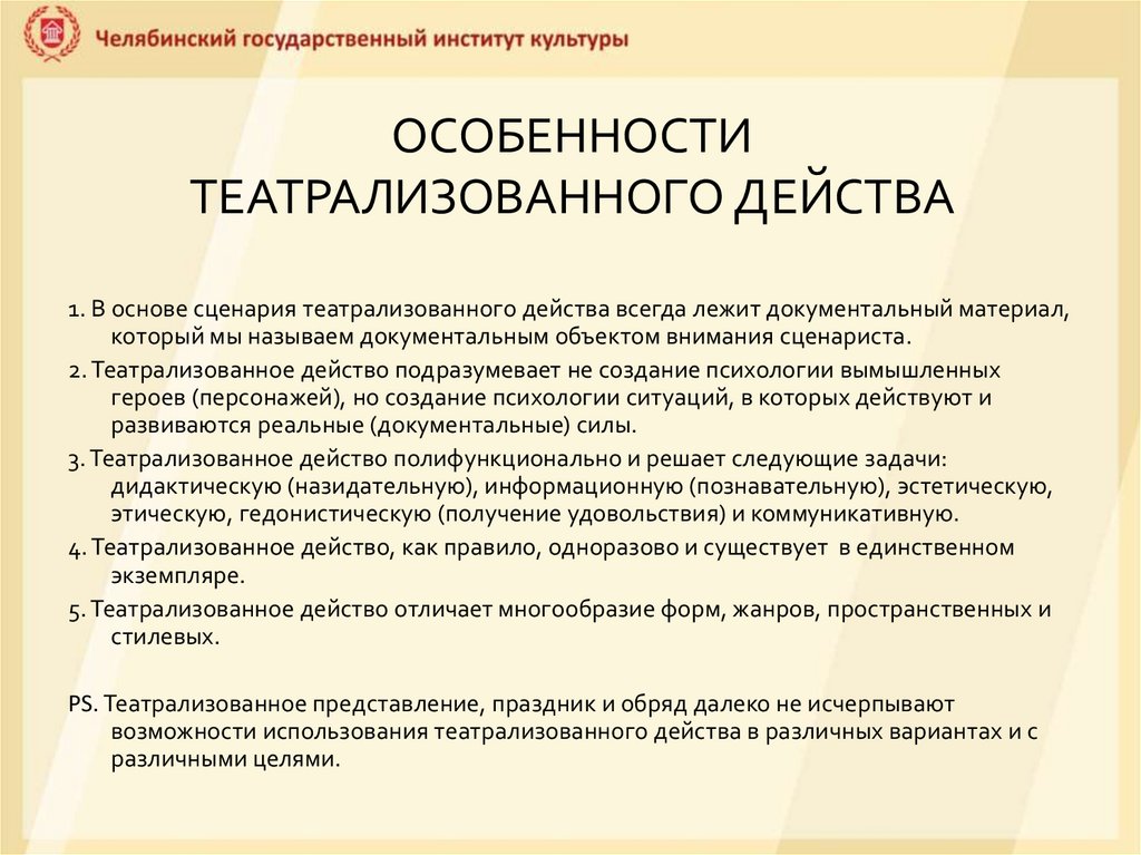 ОСОБЕННОСТИТЕАТРАЛИЗОВАННОГО ДЕЙСТВА