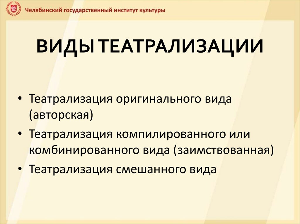 ВИДЫ ТЕАТРАЛИЗАЦИИ• Театрализация оригинального вида