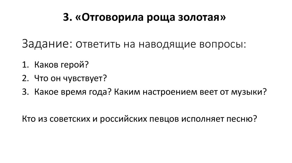 3. «Отговорила роща золотая»Задание: ответить на наводящие вопросы: