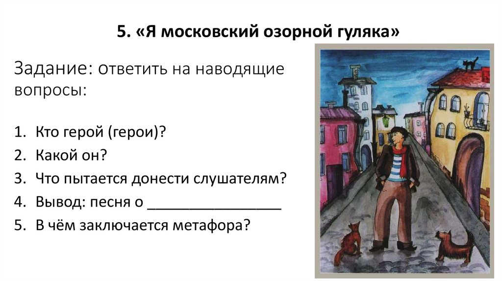 5. «Я московский озорной гуляка»Задание: ответить на наводящие