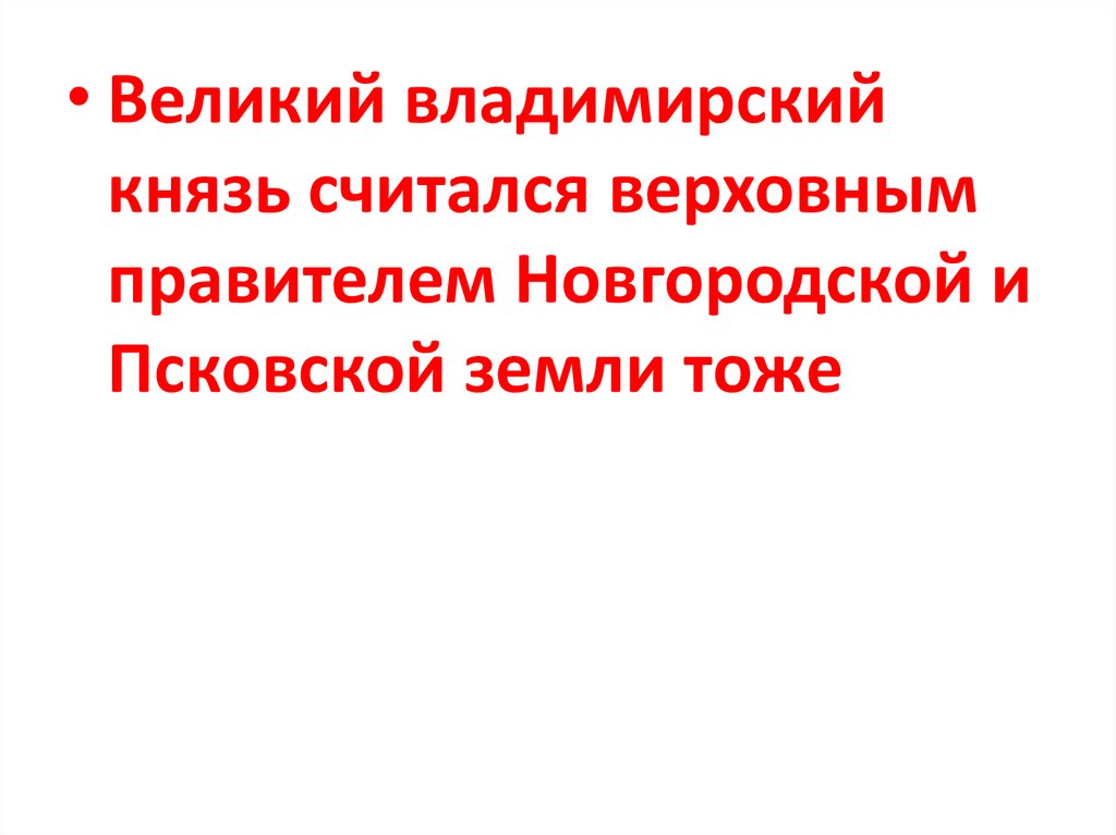 • Великий владимирскийкнязь считался верховным