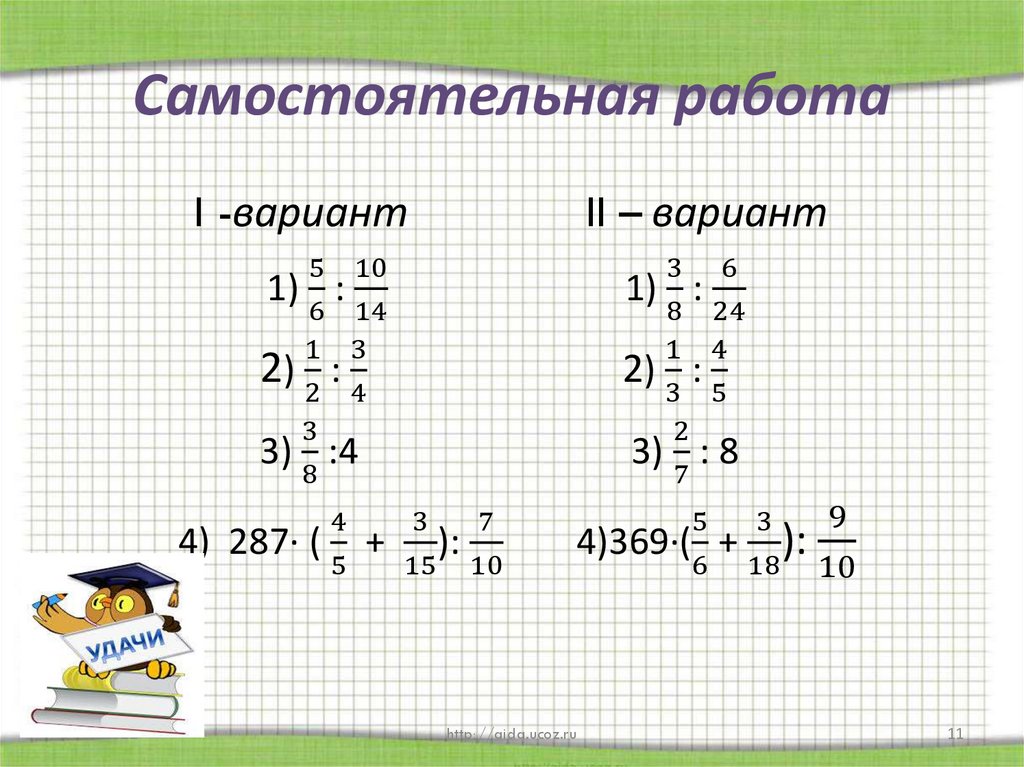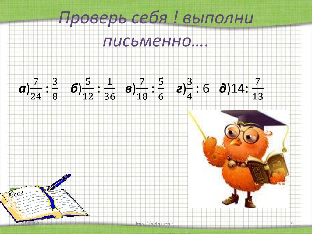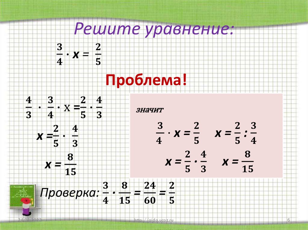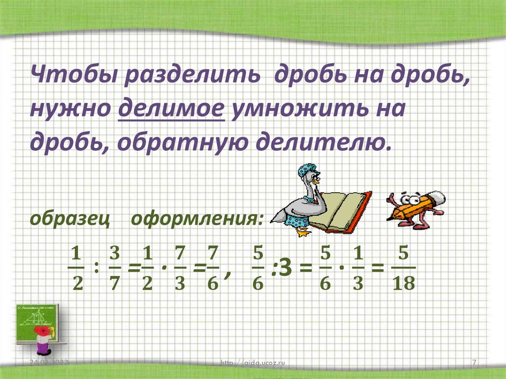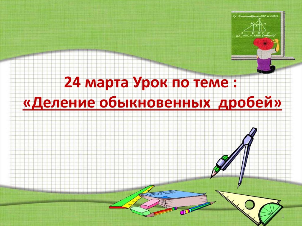 24 марта Урок по теме :«Деление обыкновенных дробей»