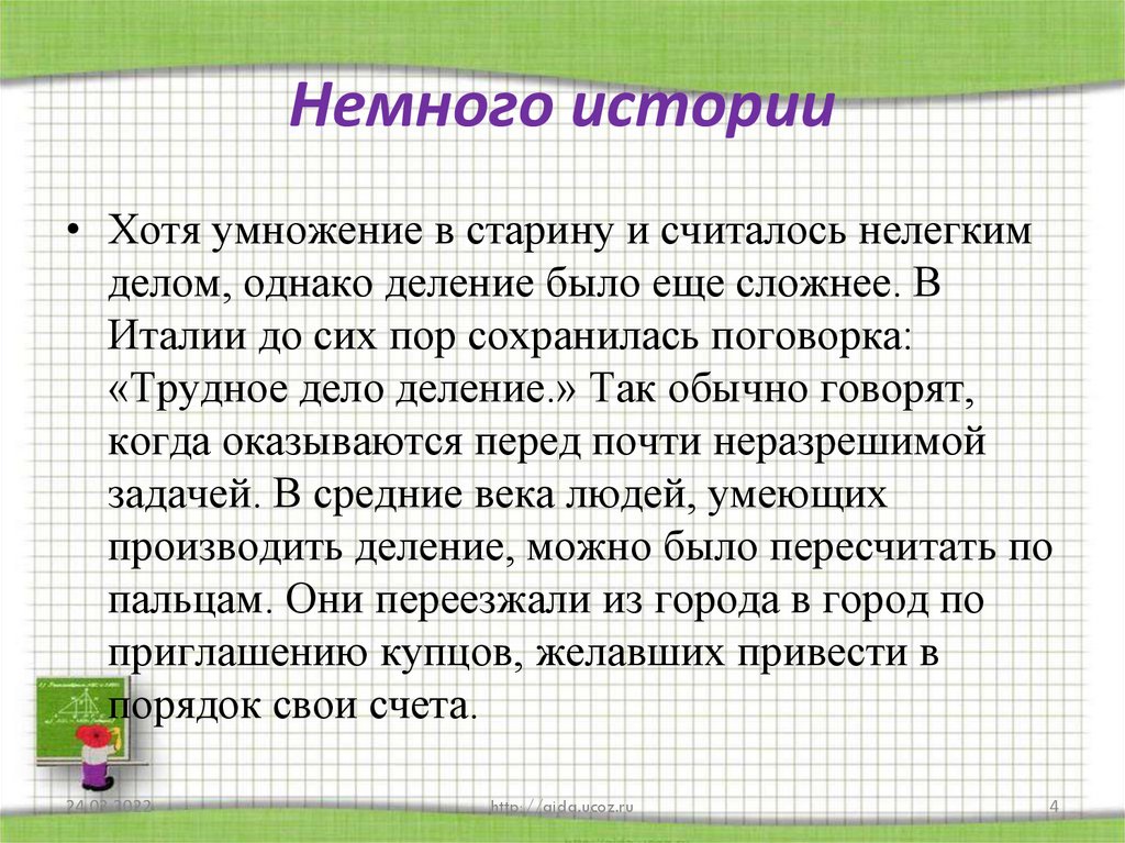 Немного истории• Хотя умножение в старину и считалось нелегким