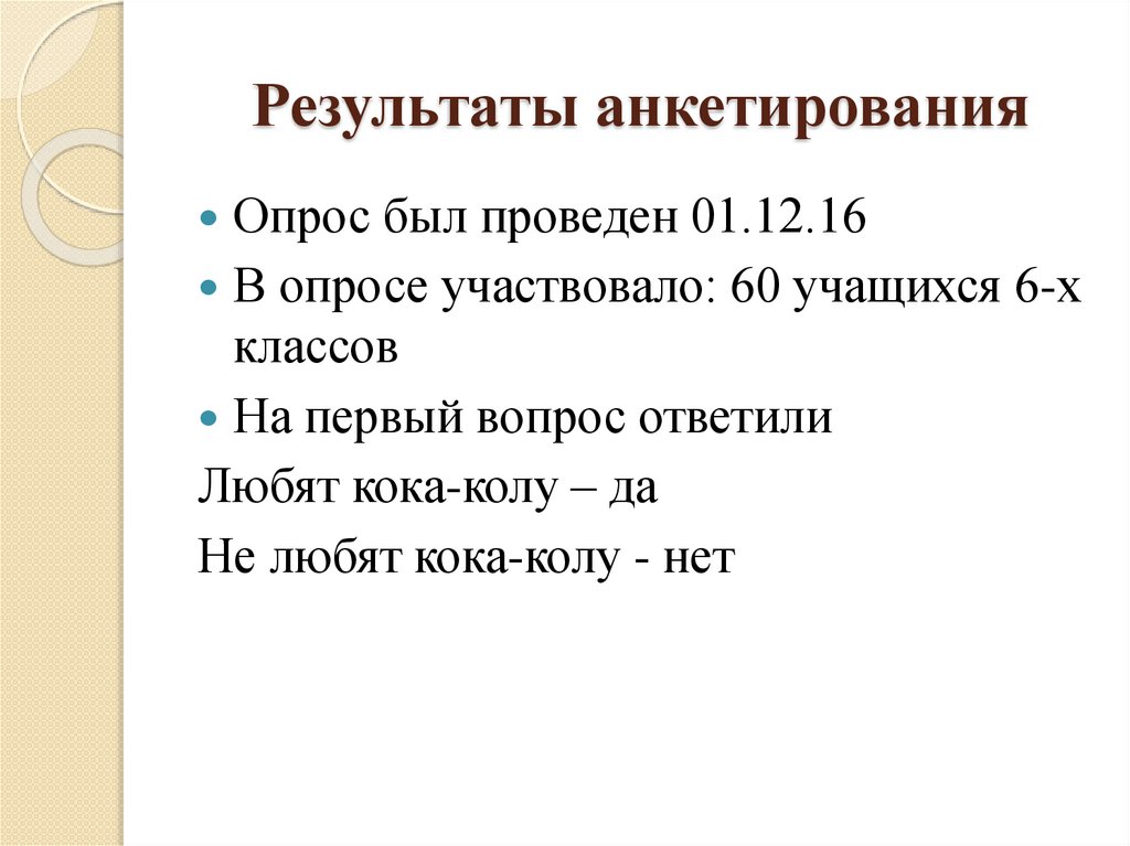Результаты анкетированияОпрос был проведен 01.12.16