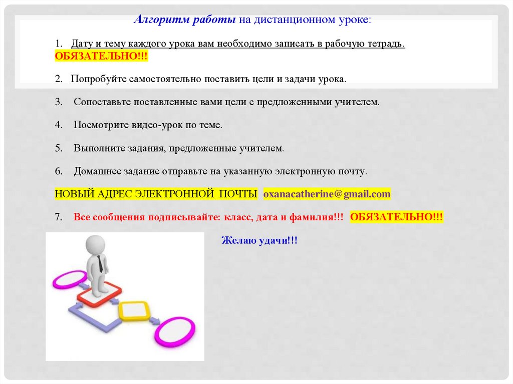 Алгоритм работы на дистанционном уроке:1. Дату и тему каждого урока вам необходимо записать в рабочую тетрадь.