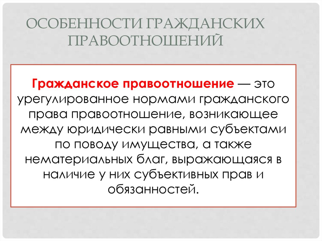 ОСОБЕННОСТИ ГРАЖДАНСКИХПРАВООТНОШЕНИЙ