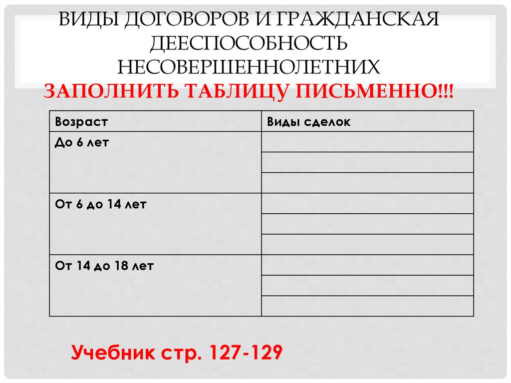 ВИДЫ ДОГОВОРОВ И ГРАЖДАНСКАЯДЕЕСПОСОБНОСТЬ