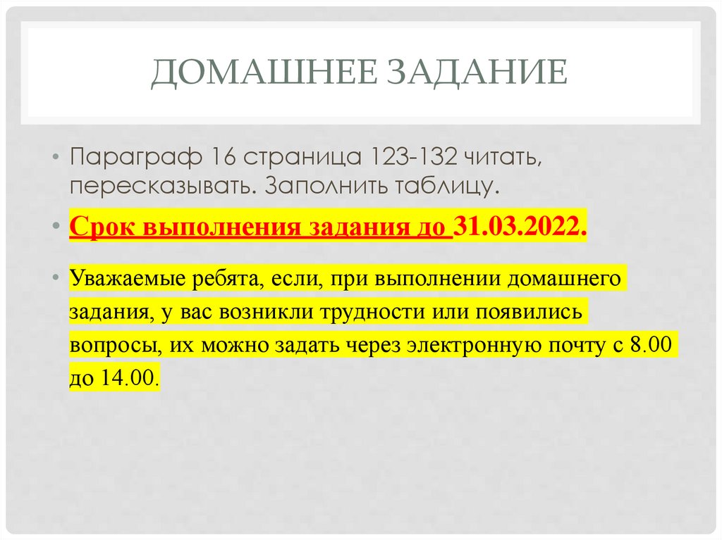ДОМАШНЕЕ ЗАДАНИЕ• Параграф 16 страница 123-132 читать,