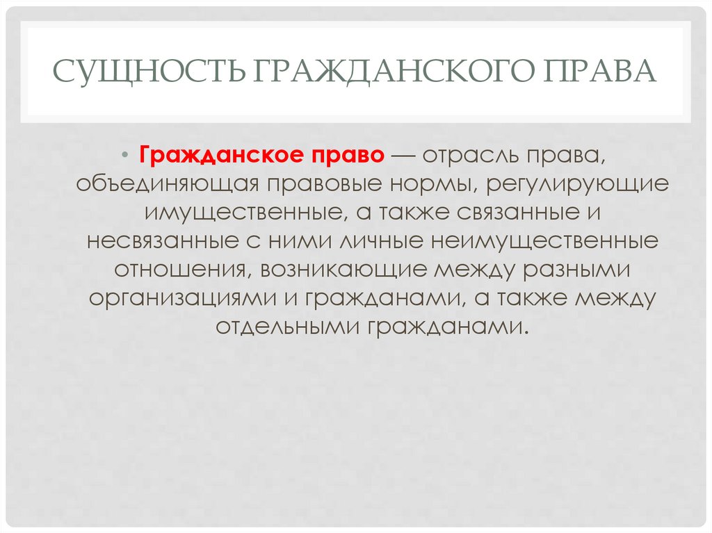 СУЩНОСТЬ ГРАЖДАНСКОГО ПРАВА• Гражданское право — отрасль права,