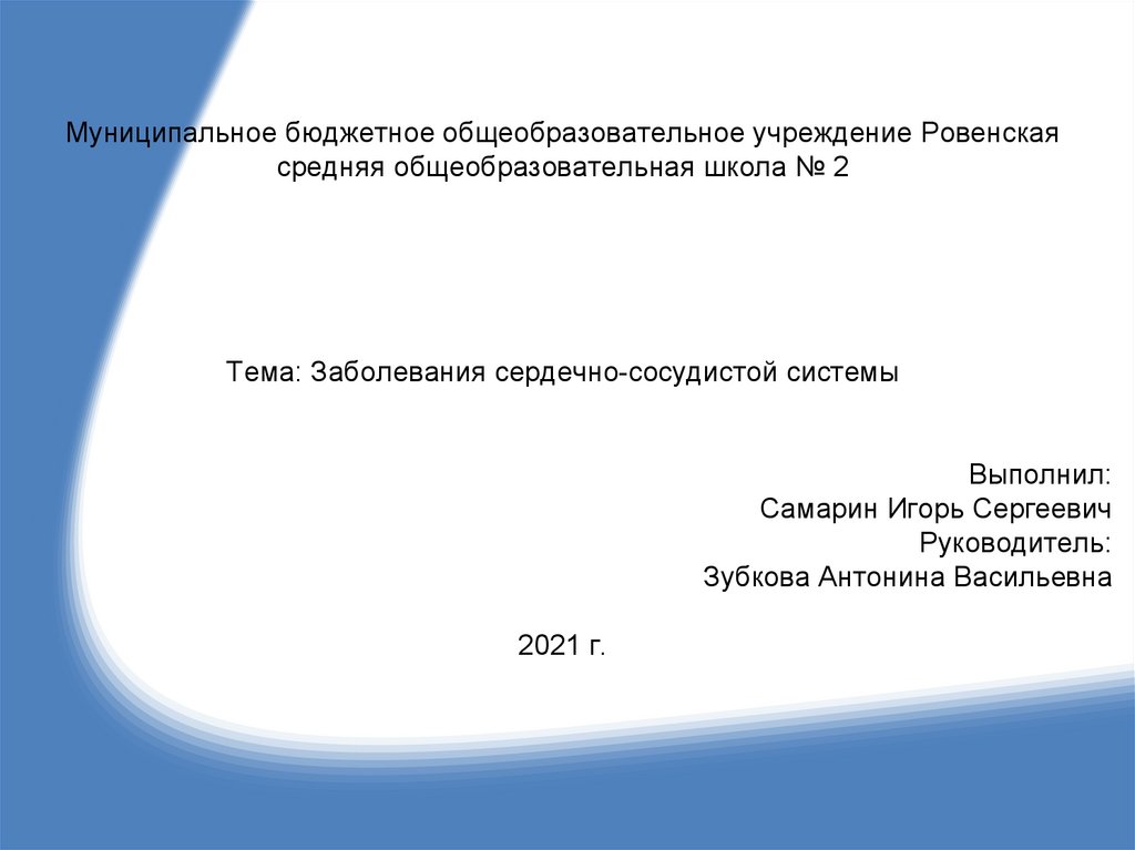 Муниципальное бюджетное общеобразовательное учреждение Ровенскаясредняя общеобразовательная школа № 2