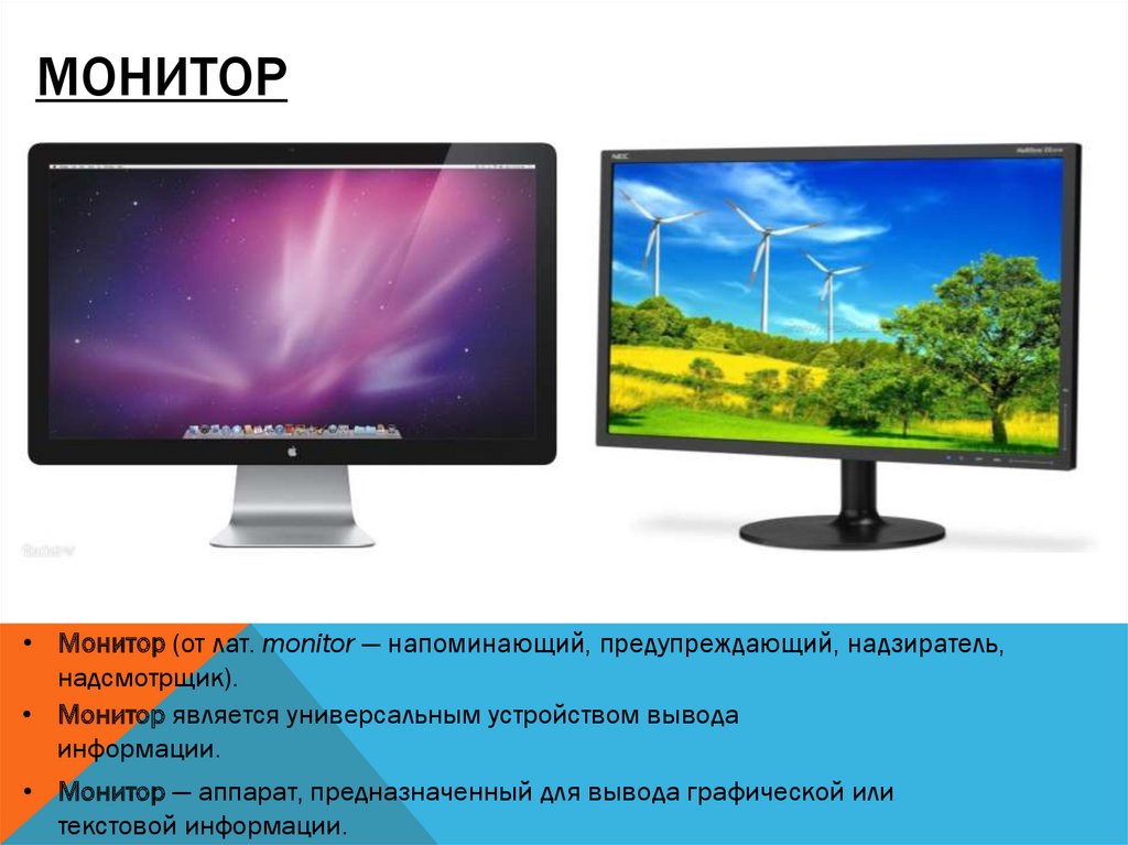 МОНИТОР• Монитор (от лат. monitor — напоминающий, предупреждающий, надзиратель,