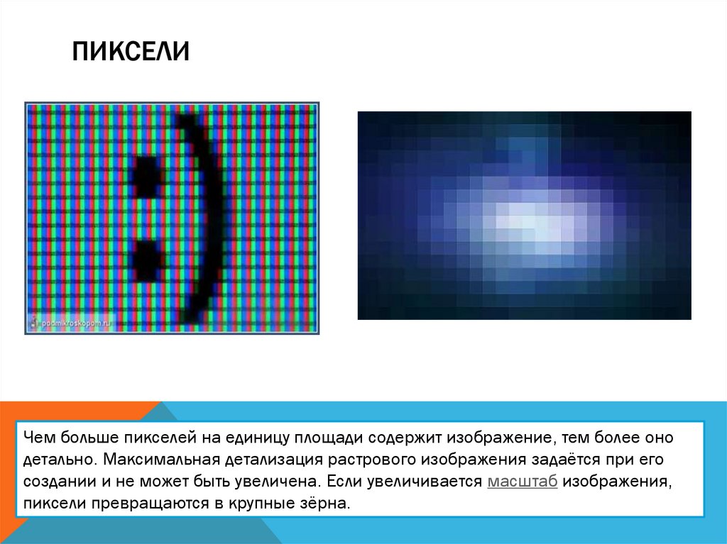 ПИКСЕЛИЧем больше пикселей на единицу площади содержит изображение, тем более оно